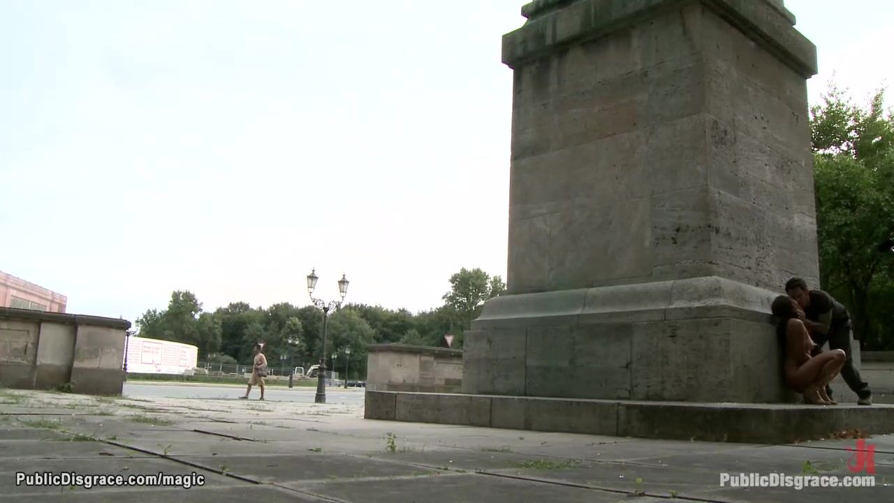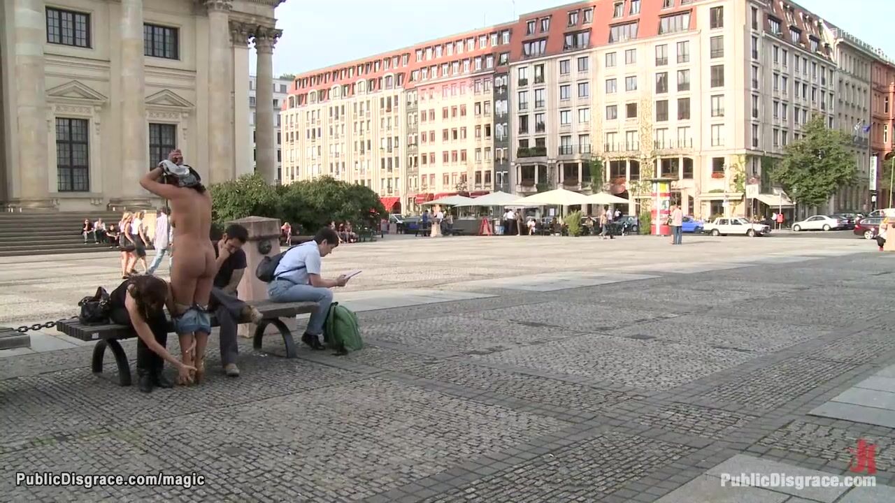 Naked big boobs brunette Spanish babe Veronica is walked and humiliated in public street then fucked in crowded caffe by Tommy Pistol and Princess Donna Dolore