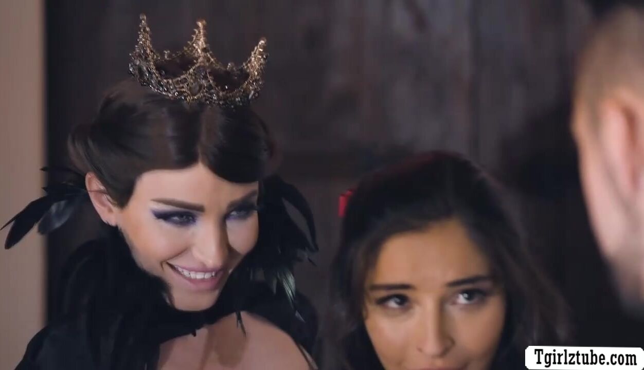 Tgirl witch interrupts gorgeous teen while kissing her handsome boyfriend.Instead of getting mad,they decide to do threesome anal sex.TS witch licks the pussy of teen babe while sucking the cock of her boyfriend.In return,the guy fucks their asses.