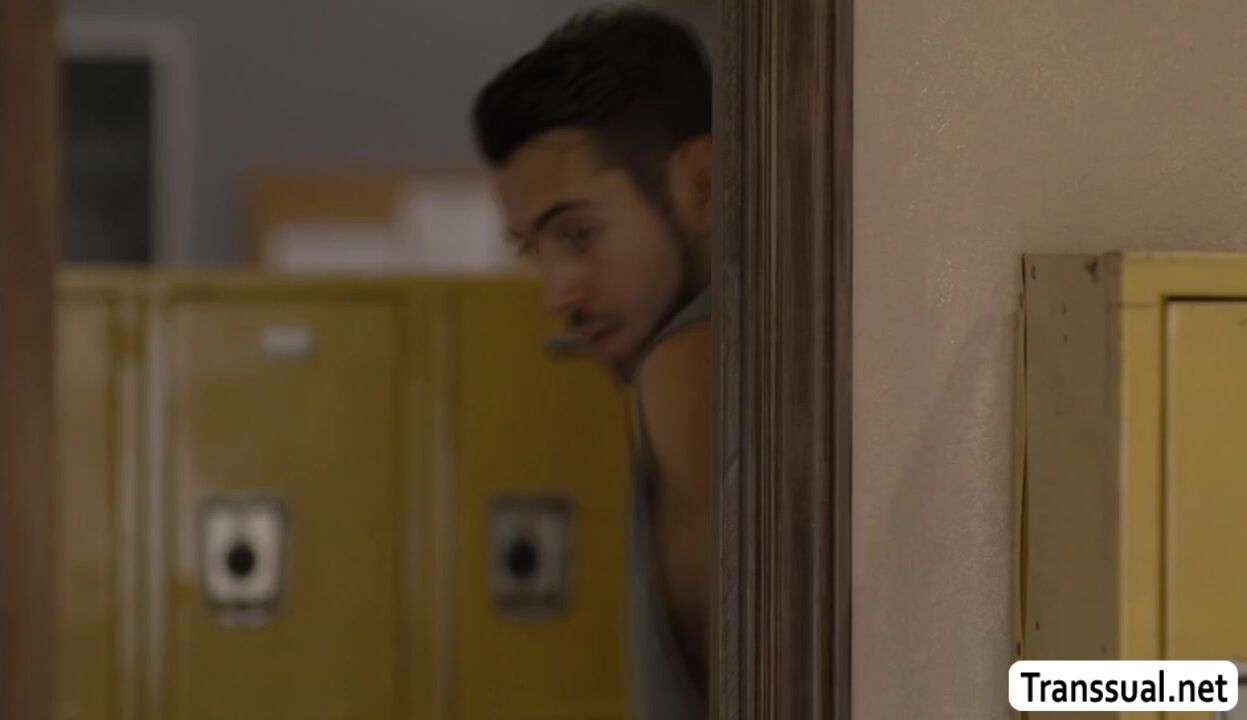 Ebony trans just finish her workout and she then take a shower in the locker room.After that,she caught a pervert dude jerking off while shes naked.Instead of getting mad,she throats his dick and lets him bareback her wet ass so hard.