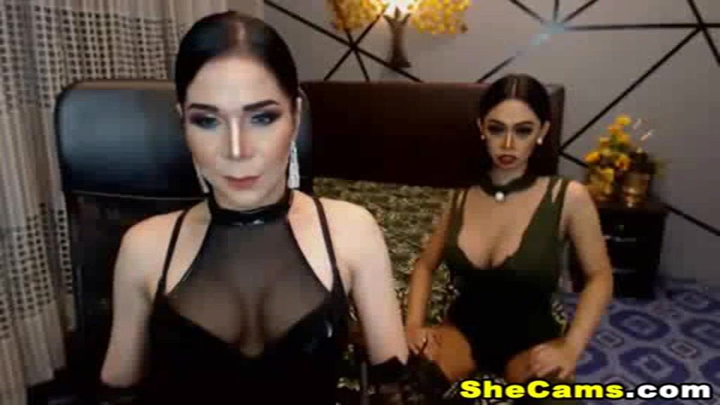 Two Adorable Flirty Tranny Blow and Fuck Live