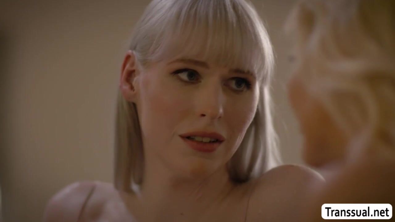 Slutty blonde comforts her shemale friend on the bed by kissing her and suck her tranny hard cock passionately.In return,smalltits TS licks the pussy of her slut friend and she then fucks it so deep and fucking hard.