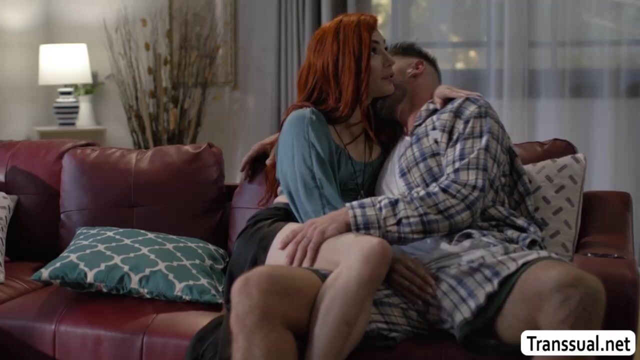 Smalltits TS and her new lover are kissing each other on the couch.After that,she goes down and throats the big hard dick of her new lover.In return,her lover bareback fucks her tight wet ass so deep and fucking hard.