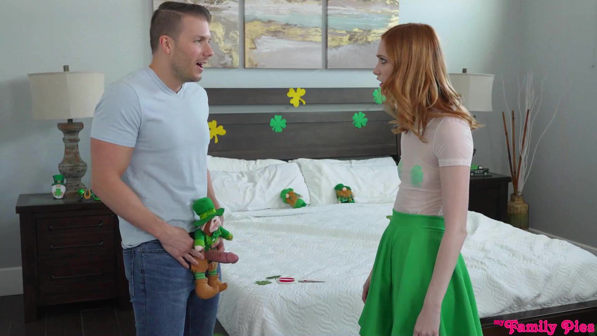 Stepbro cuts a hole in stepsis stuffed leprechaun and put dick in it