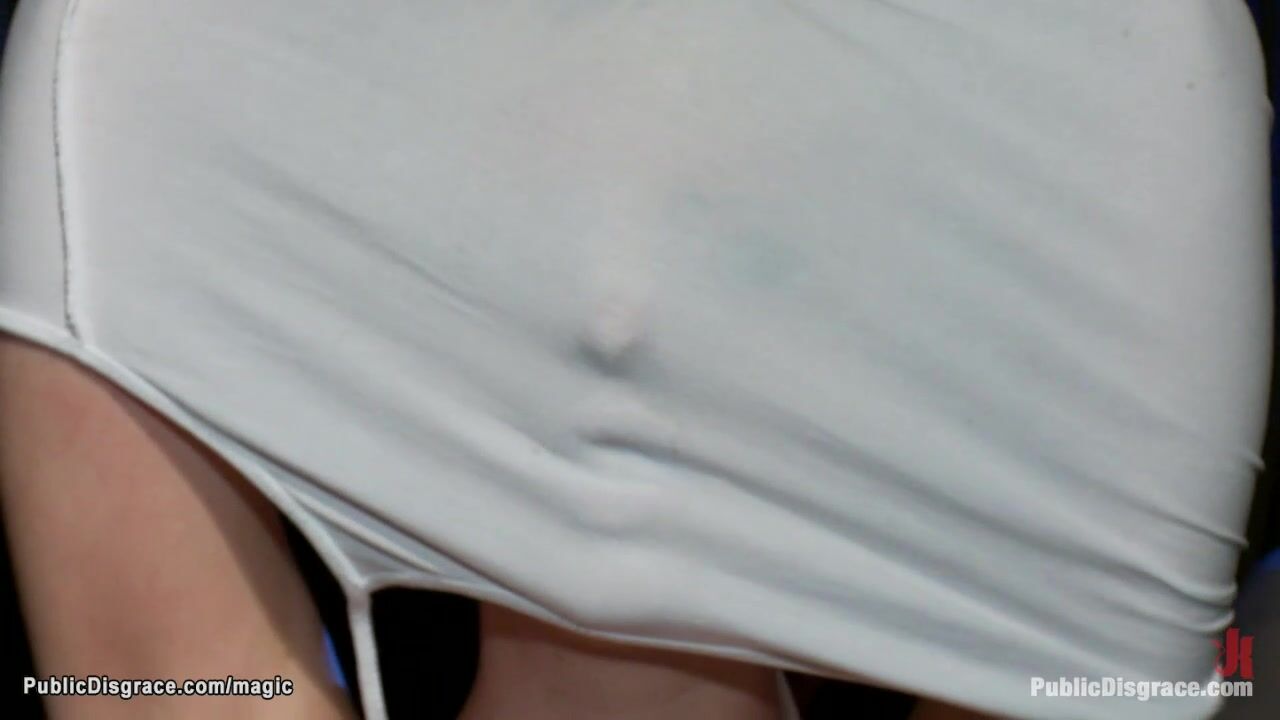 Busty bound blonde slut Cherry Torn is bound and groped by Princess Donna Dolore and Mark Davis then fucked by lesbian stranger in public