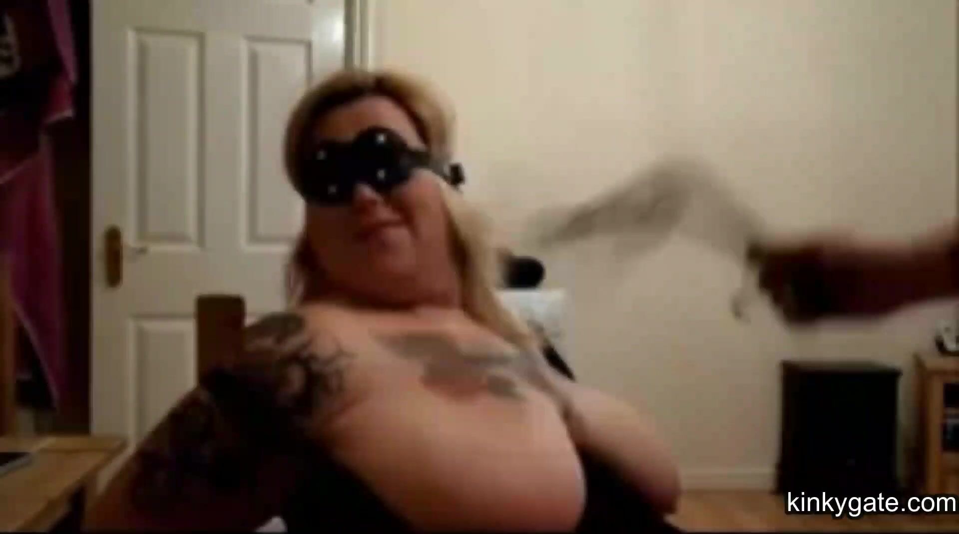 Fat, busty tattooed BBW Eva is tied up on a chair an treats like a piece of dirt, just what she needs. She gets among other things blow job lessons with a dildo and I spank her face.
