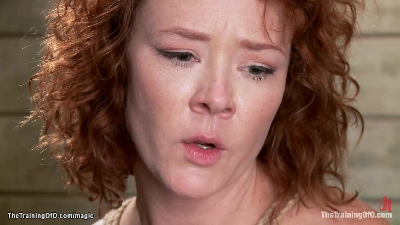 Bent over redhead trainee Audrey Hollander bound and anal fucked with dick on a stick then tight tied to X frame shaved pussy vibed by master James Mogul