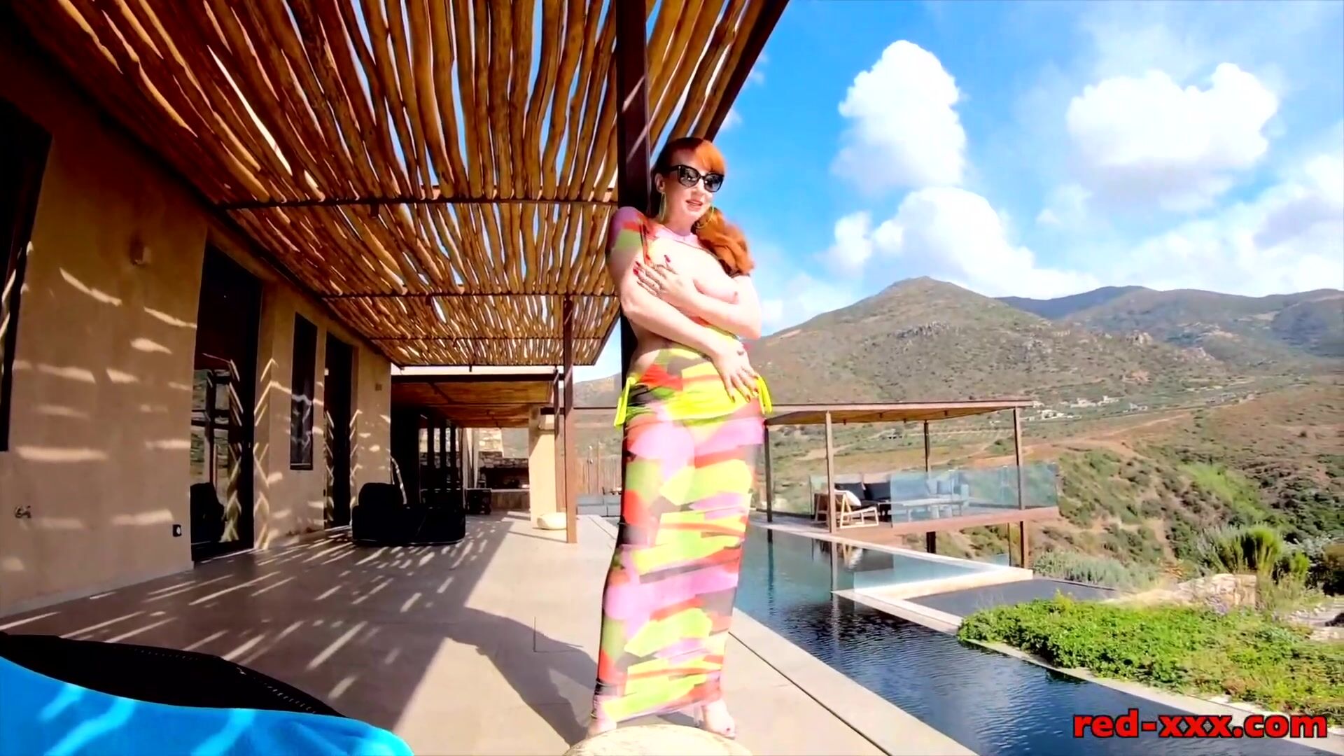 Watching Red XXX masturbate poolside is almost as nice as the view she has! Watch Red finger then stuff her pussy with a glass dildo outside!