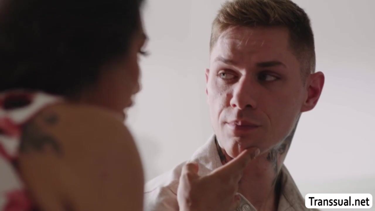 Tgirl stepmother goes to the room of her new stepson and then they start kissing each other.After that,she lets her stepson suck her tranny cock while shes licking his tight ass to makes it wet.Next is,busty Tgirl bareback fucks her stepsons ass.