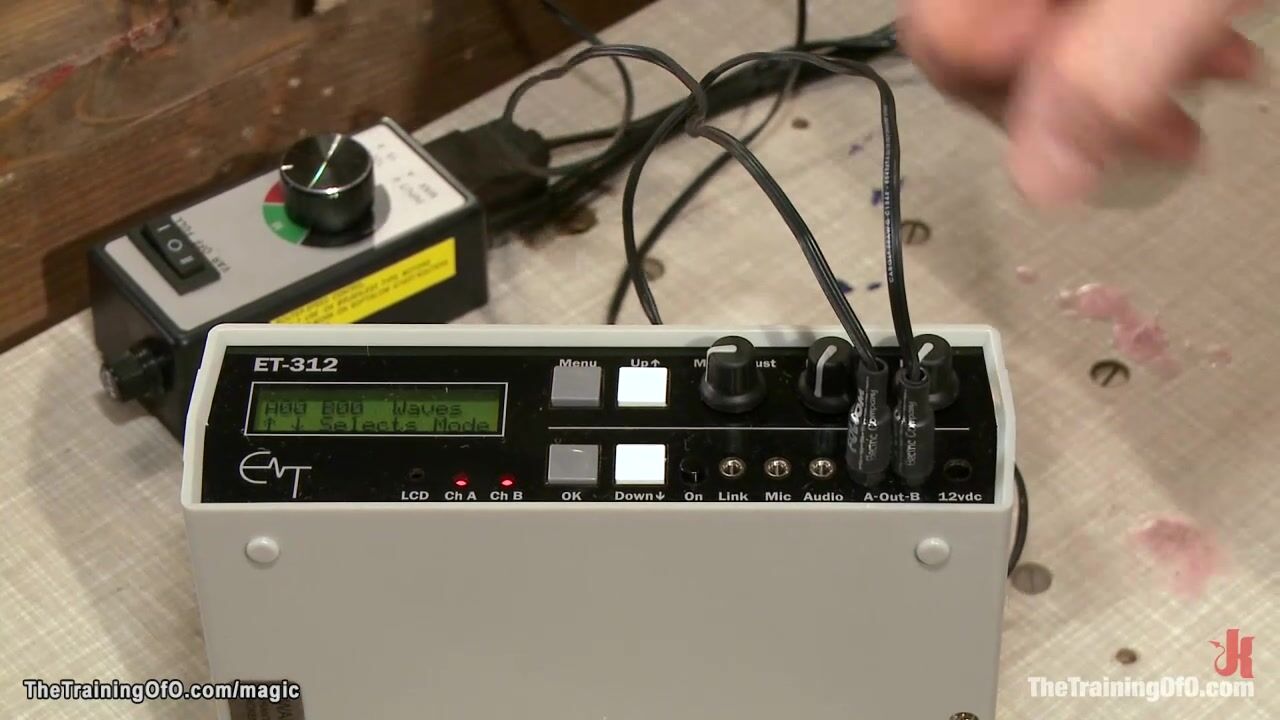 Master James Mogul binds trainee Claire Robbins in doggy position and connects her on electric pads then makes her suck and fuck gimp with huge cock Rob Blu