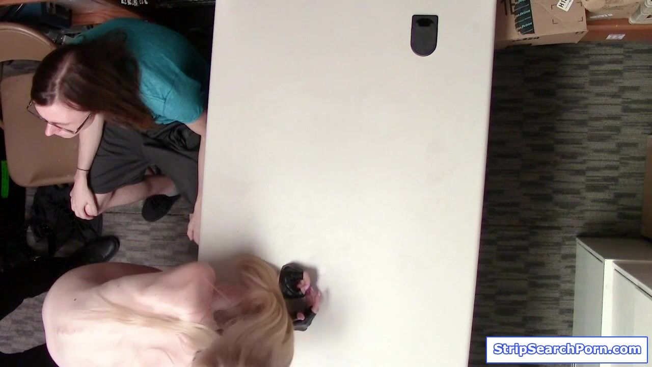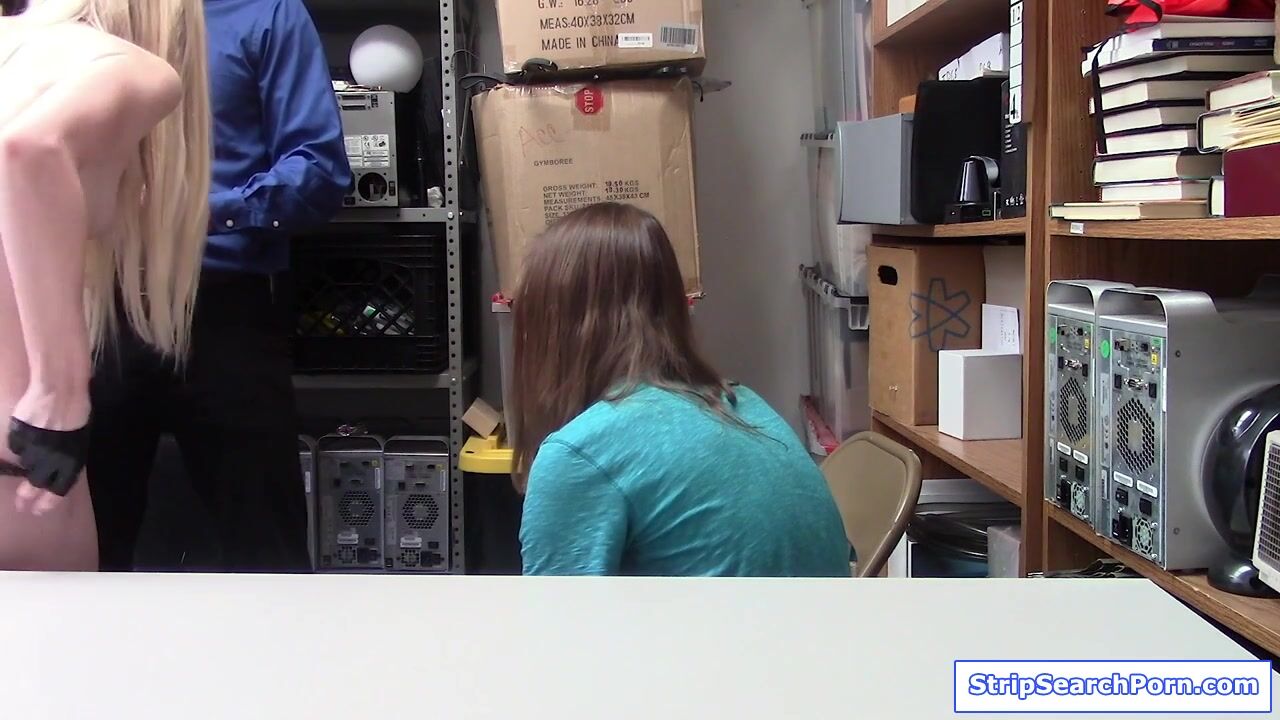 A blonde teen and her boyfriend got caught stealing and fucking in the fitting room.The officer conducts stripsearch on the girlfriend.To avoid cops,the guy agrees to what the officer fuck his gf.He stays at the side while her gf blowjobs the officer