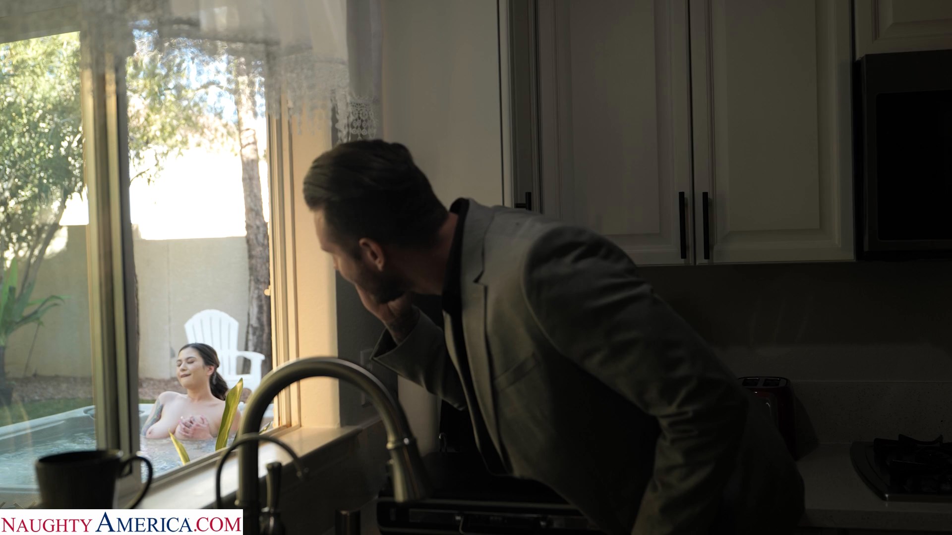 My new big tits neighbor sneaks in my hot tube from time to time