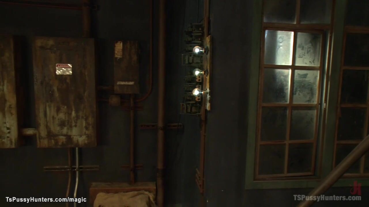 Tattooed big booty and big tits Latina trans TS Foxxy rims blonde babe Ella Nova then ties her and fucks in shaved pussy and tight ass in basement on old mattress