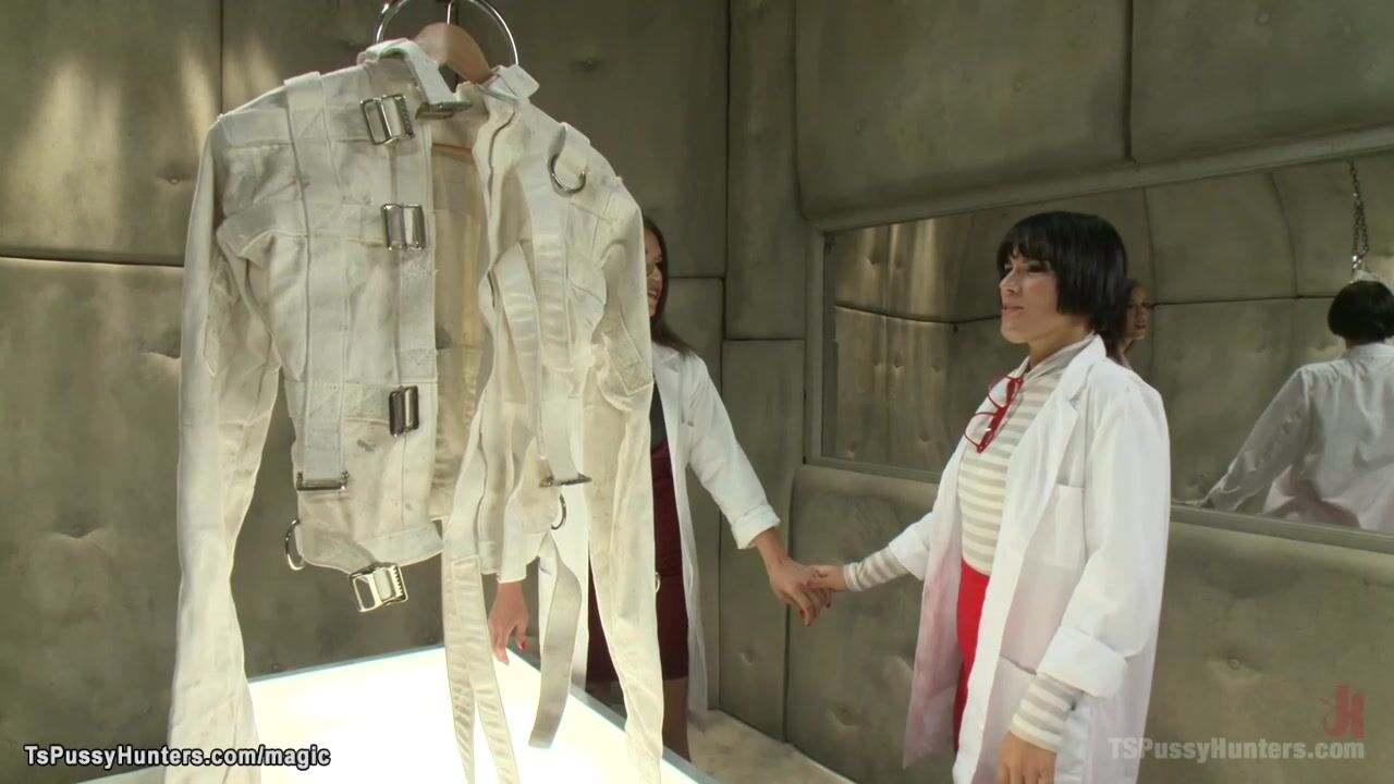 Brunette trans doctor Tori Mayes brings lab partner Rose Rhapsody in padded room and puts her in straight jacket then fucks in pussy and ass