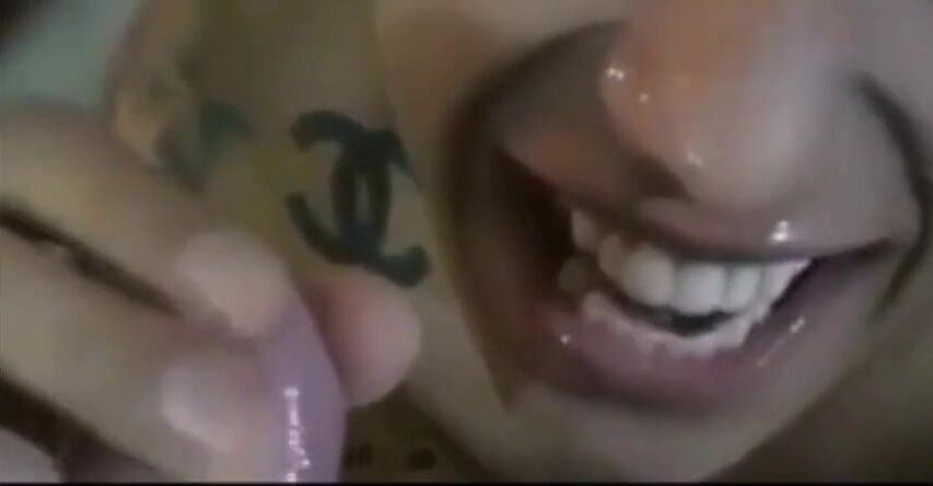 Tatooed brunette sensual BBC blowjob
