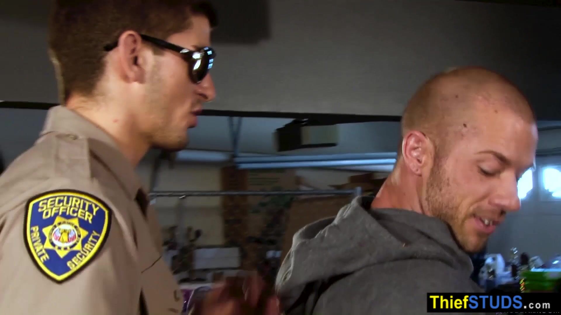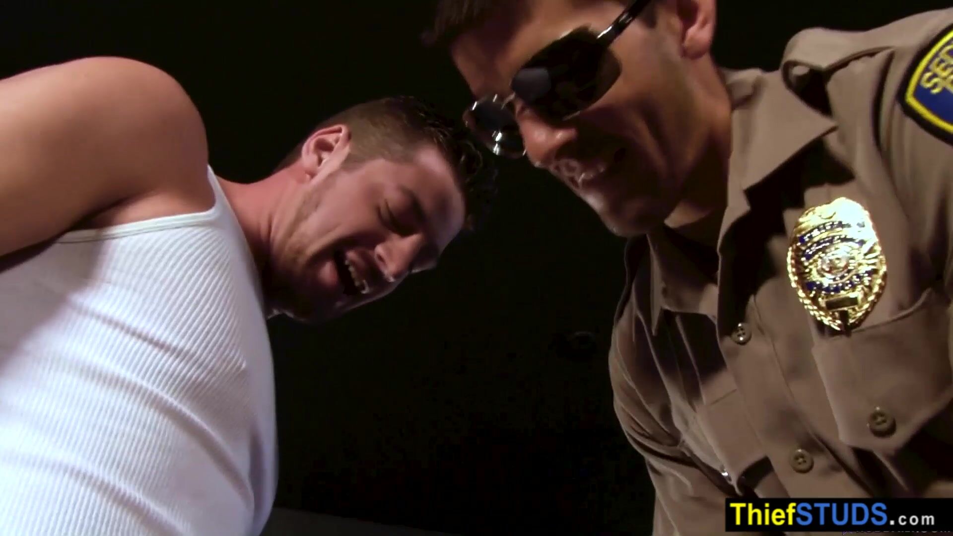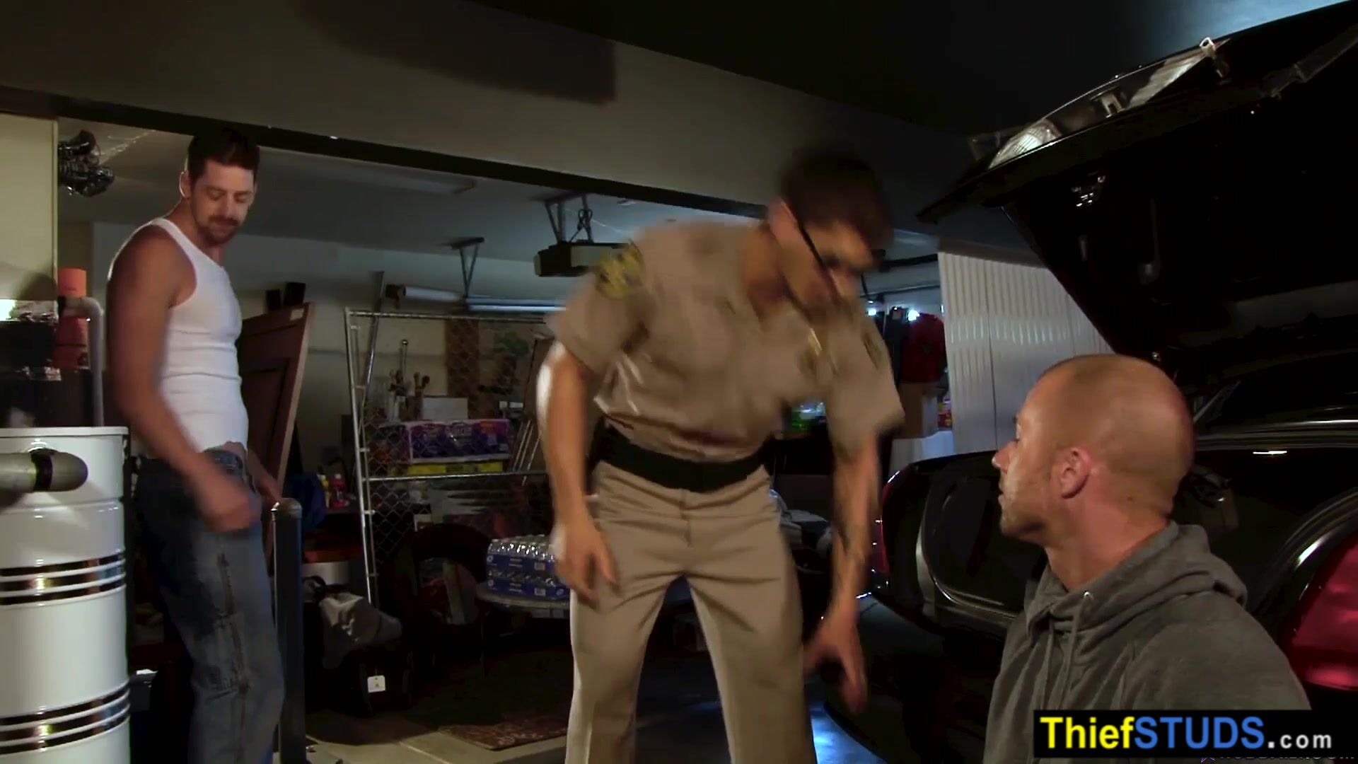 Two dirty gay cops Tyler Torro and Andrew Star catching a muscle teen perp Rod Daily and take him to a garage where the big cocked cops fucking his face and his butt bareback
