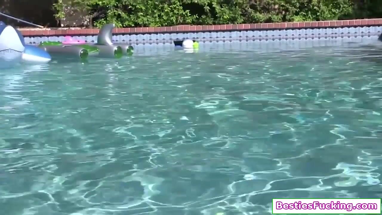 A big tits teen babe and her bffs have a party before college starts.They all get naked and soak in the pool.Her brunette friend kisses her and grabs her big boobs.The latina lets her friend lick her shaved pussy.In return she fingers her.