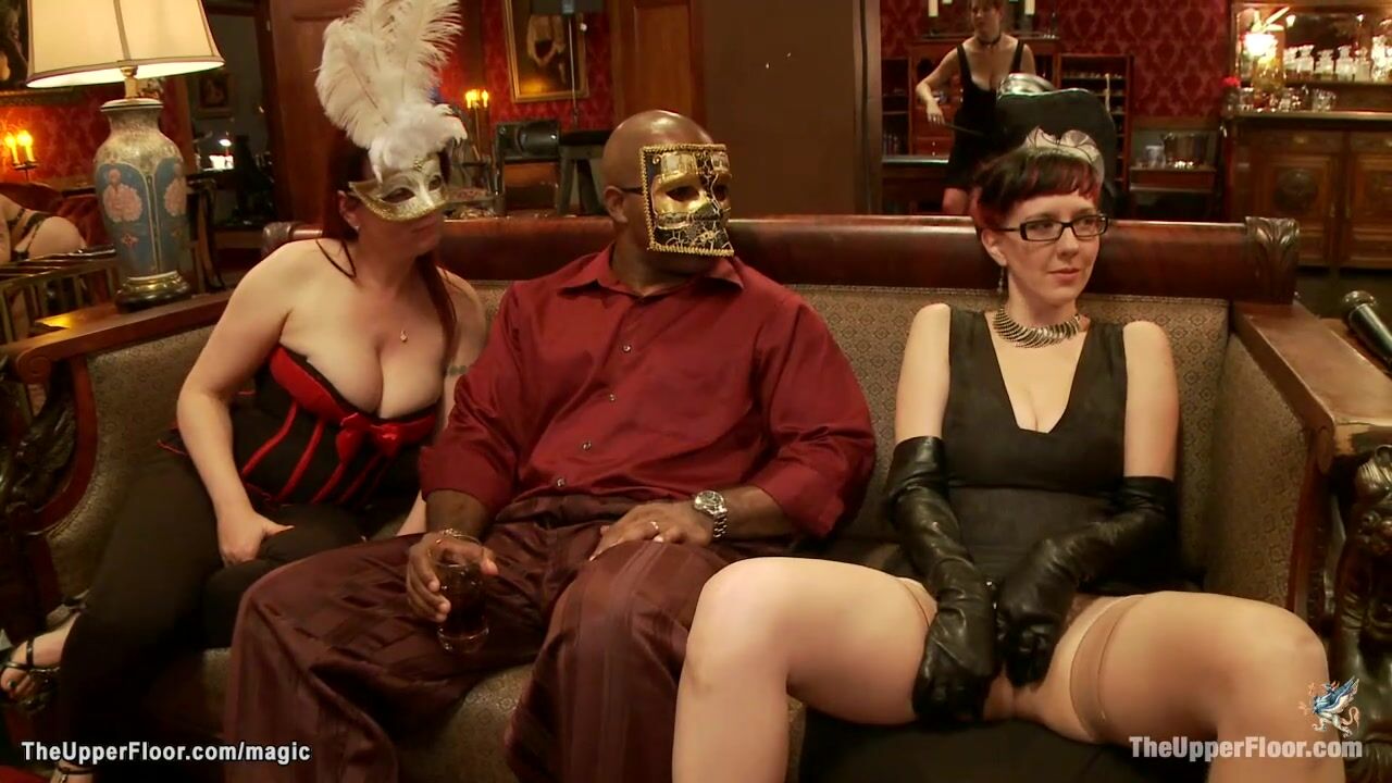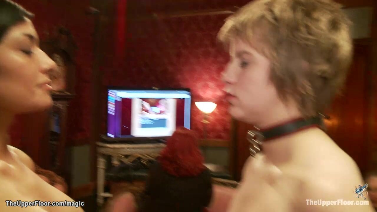 Hot lesbian slaves Alani Pi and Beretta James made lick each other in sixty nine position while blonde Dahlia Sky face fucked at orgy party in the Upper Floor