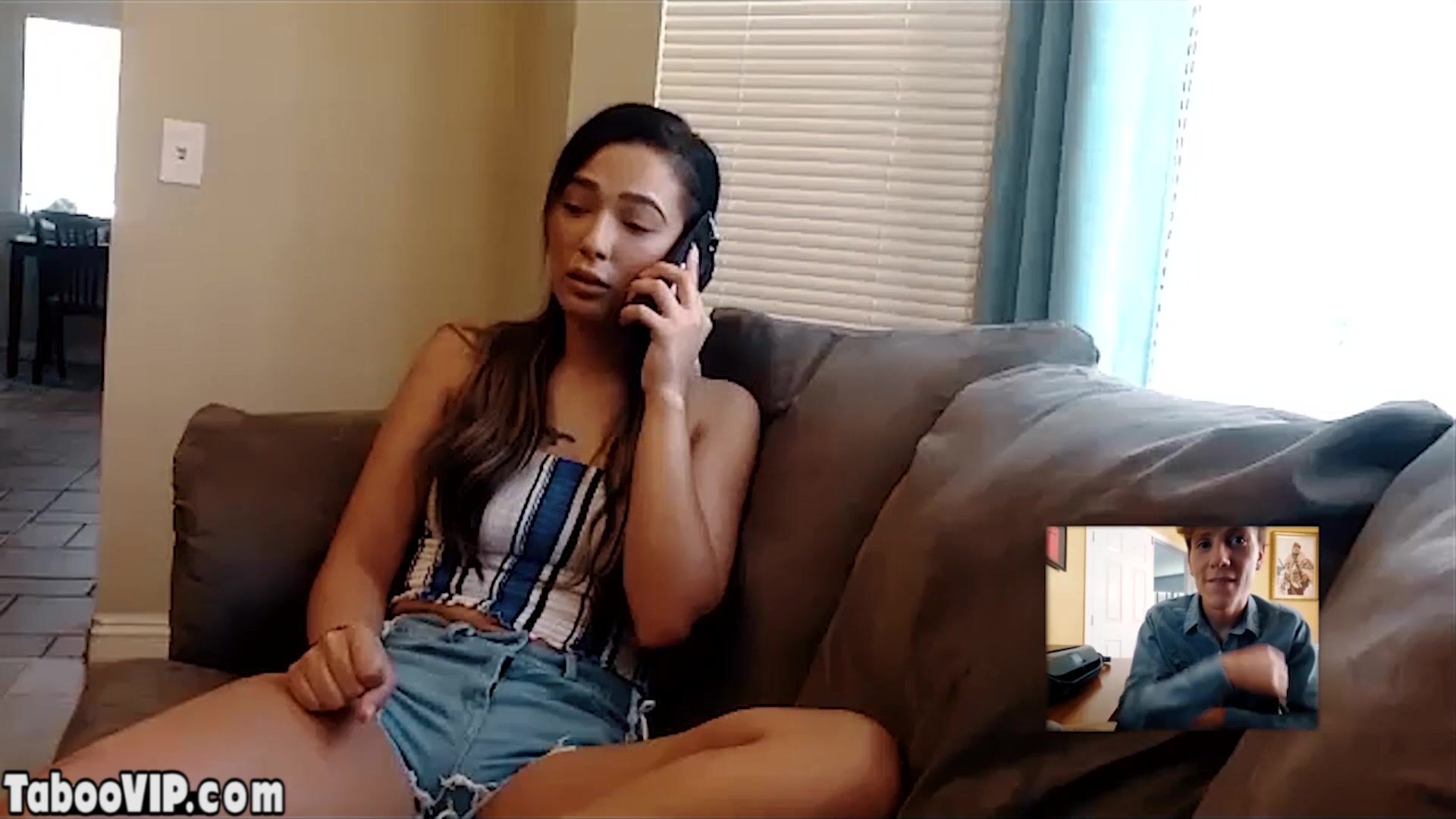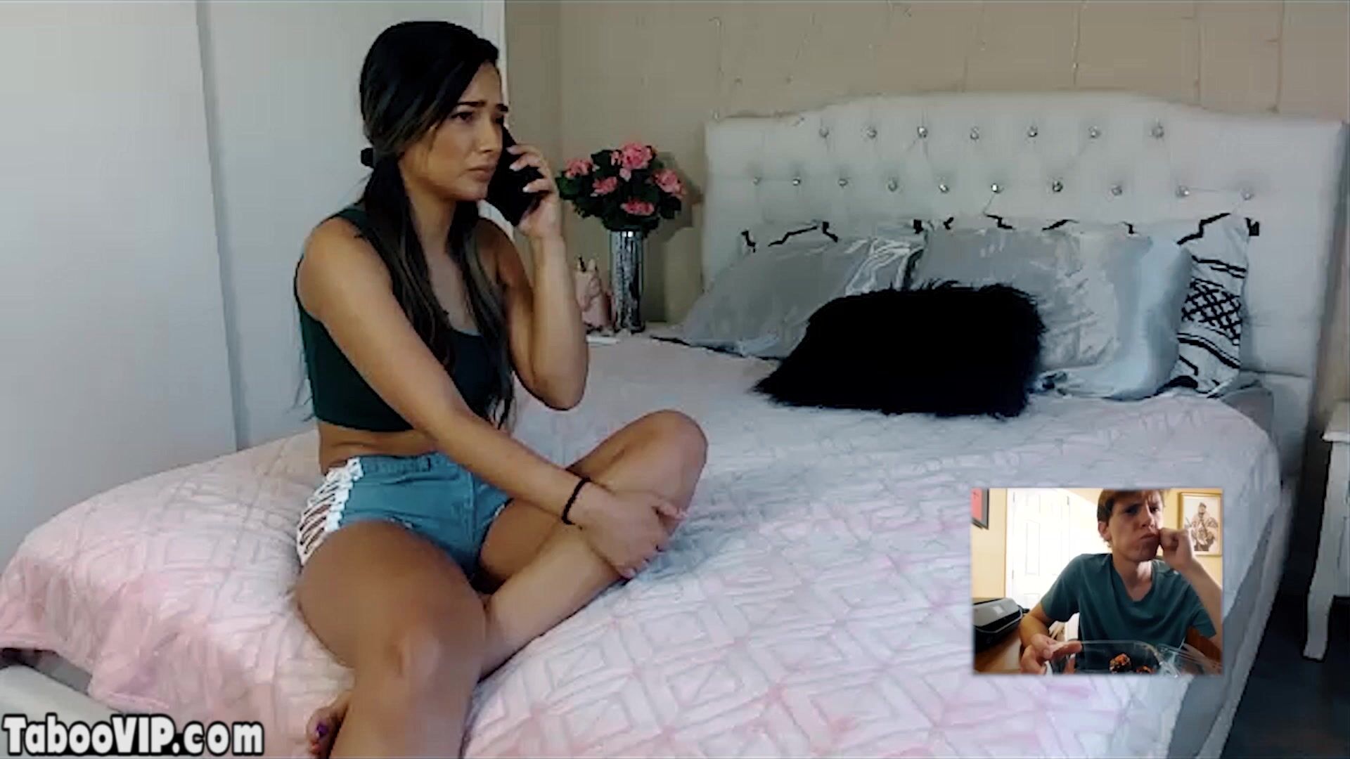 Dude hacking a hot brunette teens Jaye Summers webcam and ordering her to satisfy her pussy So the small titted babe starts masturbating and using a big dildo to fuck her shaved pussy