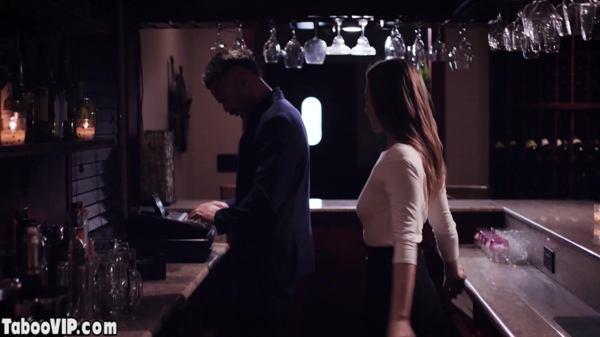 Teen waitress fucked by her dirty old boss in the bar