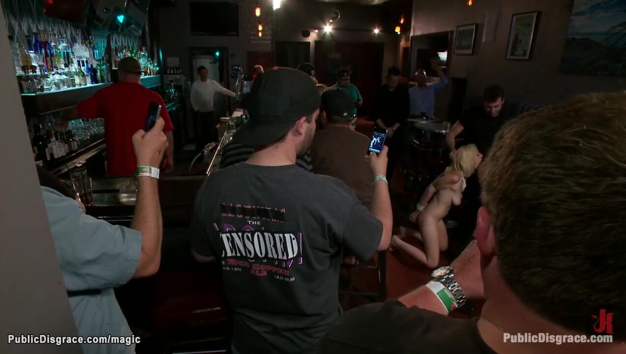 Natural busty blonde babe Rylie Richman gets nipples clamped and pussy vibed by Princess Donna Dolore and James Deen and fucked in mouth in public bar