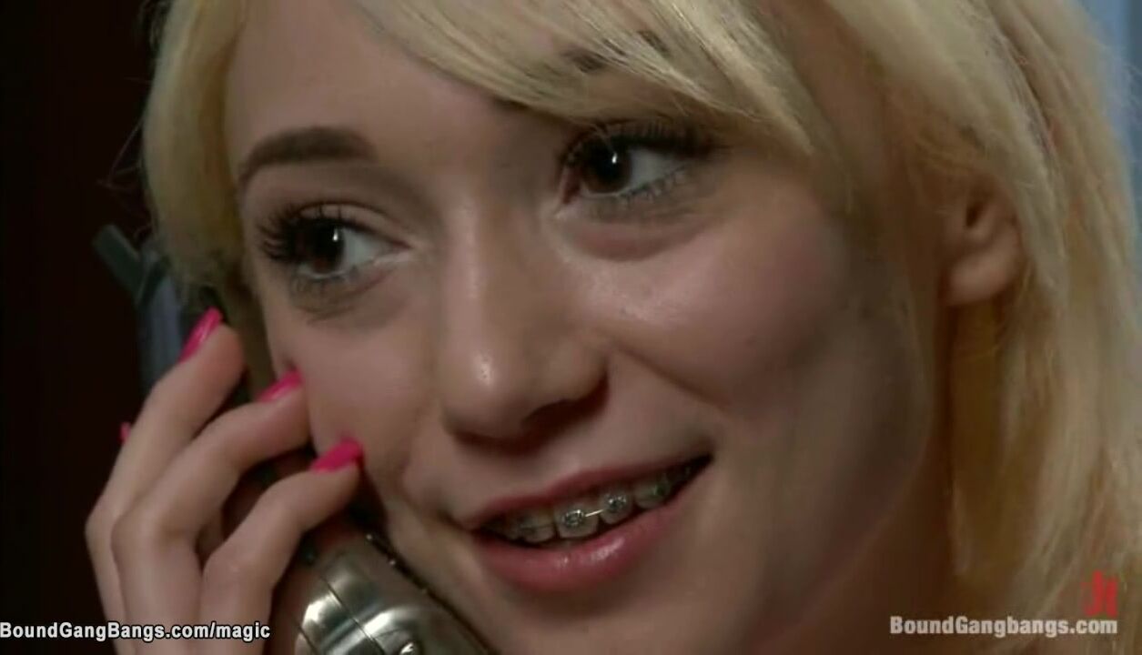 Adorable blonde sitter Moretta is bound by her boss Steve Holmes and his friends after she is caught snooping through his drawers and group fucked by big cocks