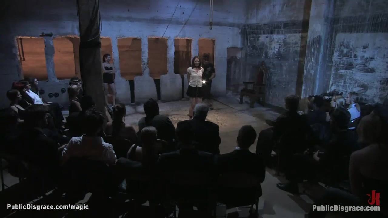 New brunette slut Sarah Shevon is bound by dom Princess Donna Dolore then face and ass fucked by Mickey Mod and Benjamin Brat in public