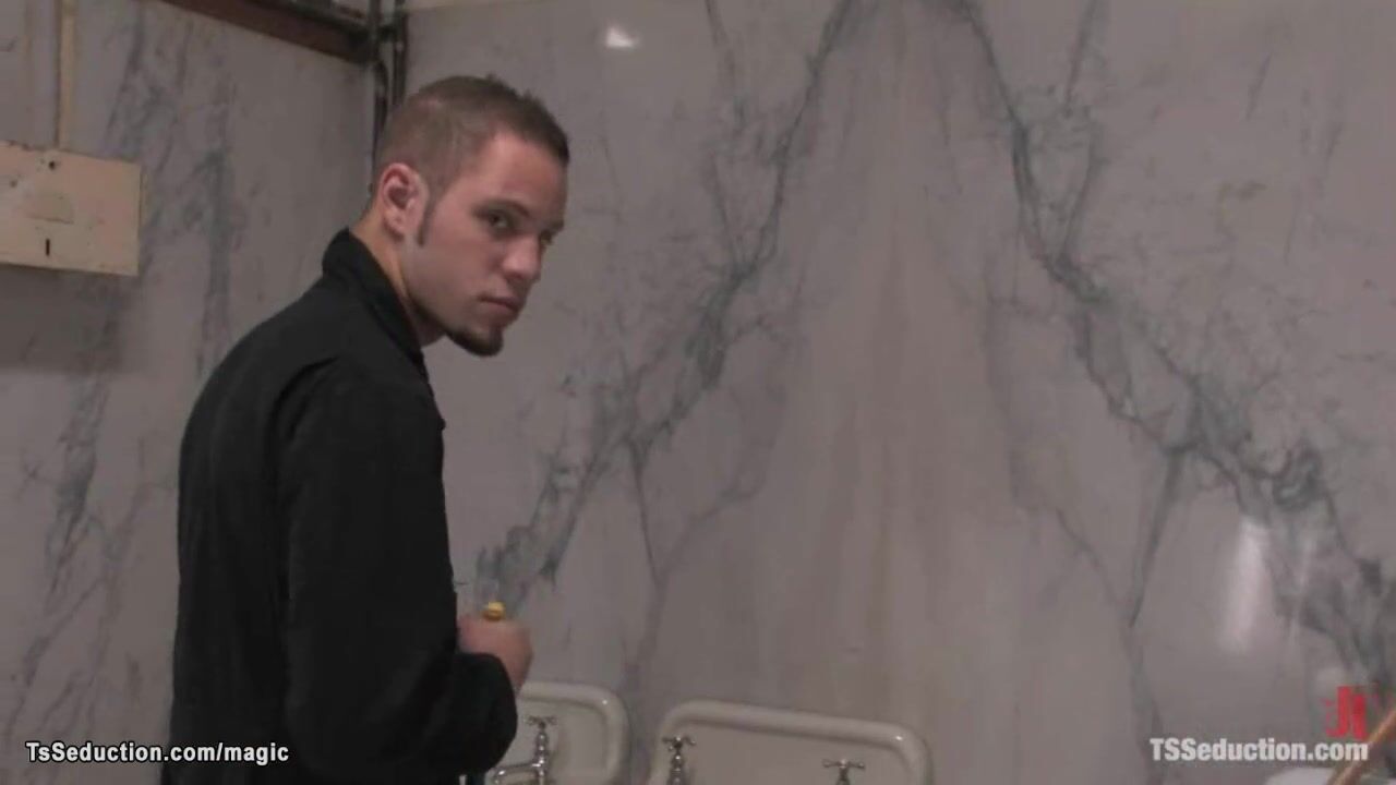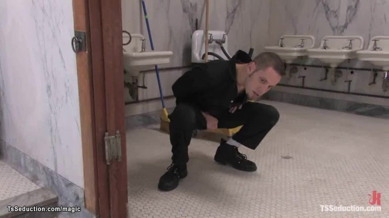 Shemale fuck cleaning man in toilet