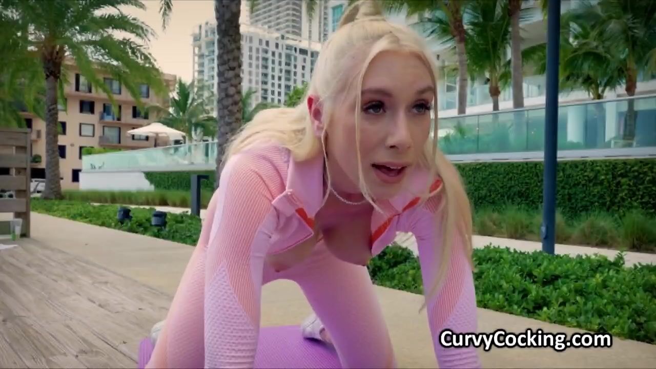 Super sexy big tit blonde Kay is having her regular workout outdoors when a stranger invites her indoors. The rain is coming and she needs shelter!