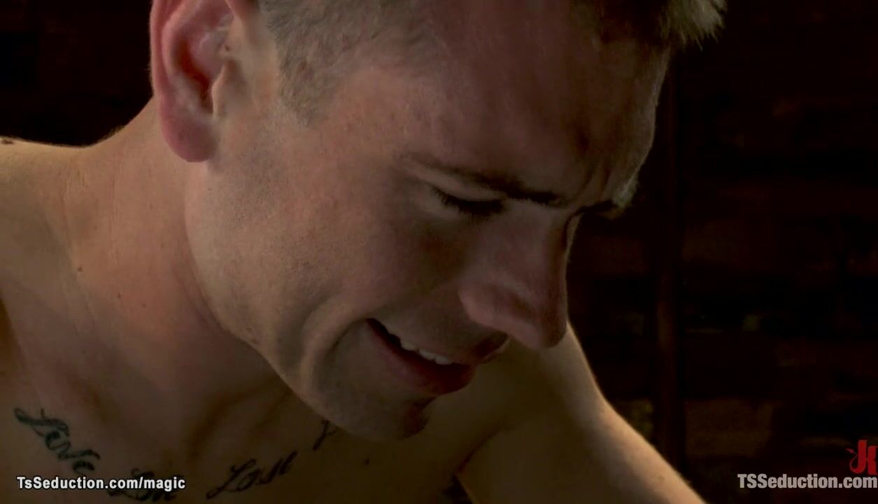 Shemale mistress Aly Sinclair anal fucks bound man John Jammen with machine and suctions his dick then anal fucks him in private dungeon