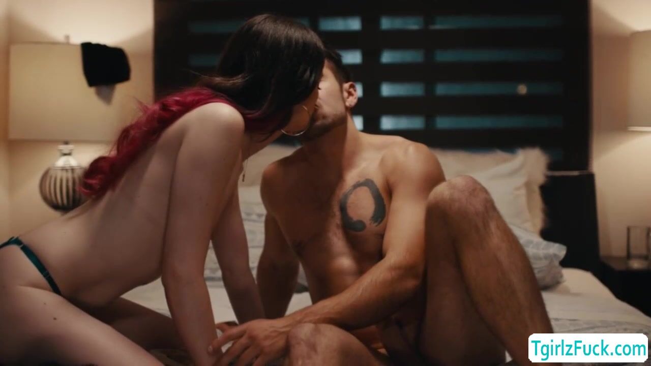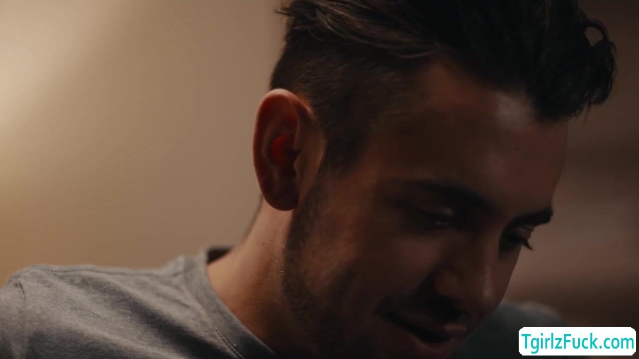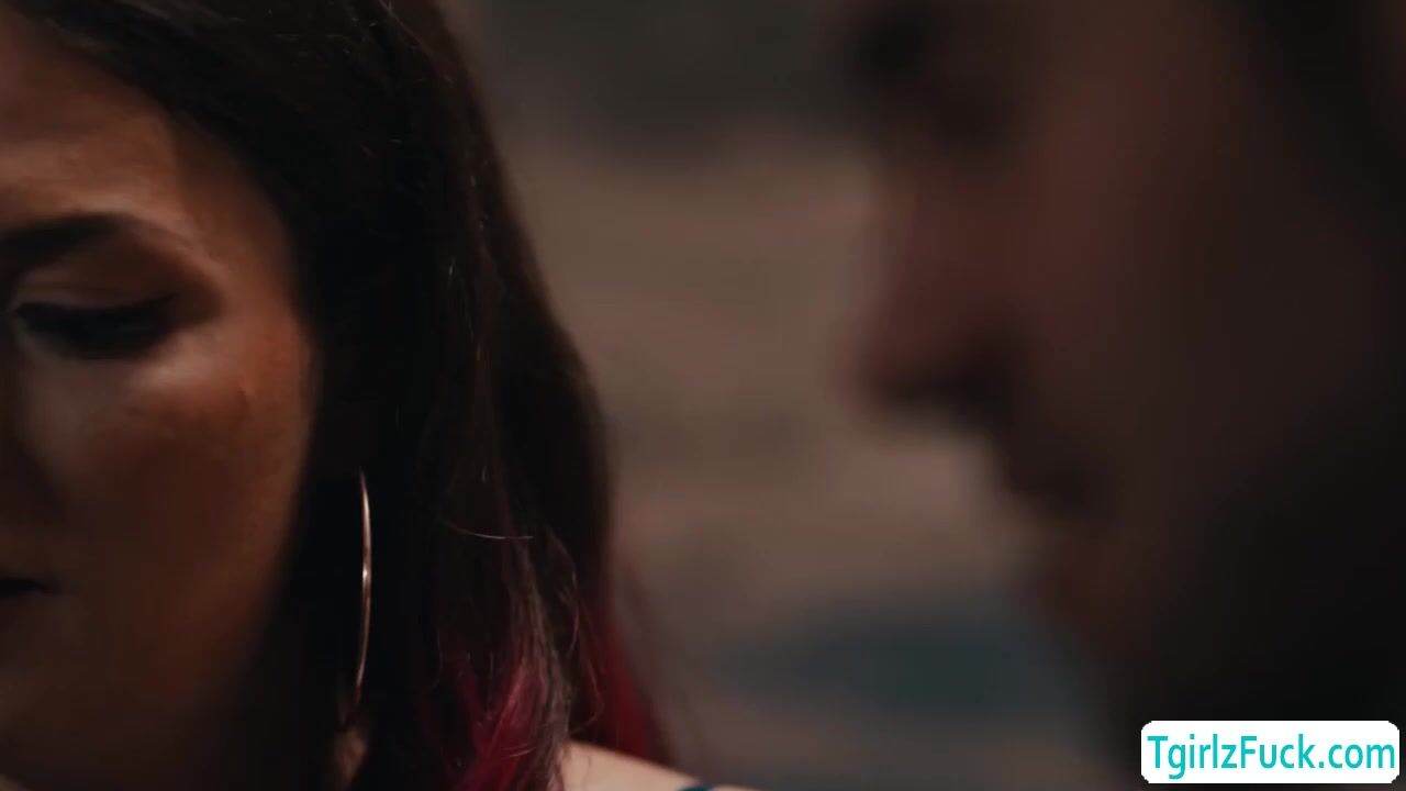 Small tits and skinny shemale Natalie Stone talks to her stepbro Dante Colle in the room.The pale tranny shows interest to fuck him.The horny dude kiss and titsucks her.The brunette trans and the stud trades deepthroat blowjobs.He bareback anal fucks her big ass.