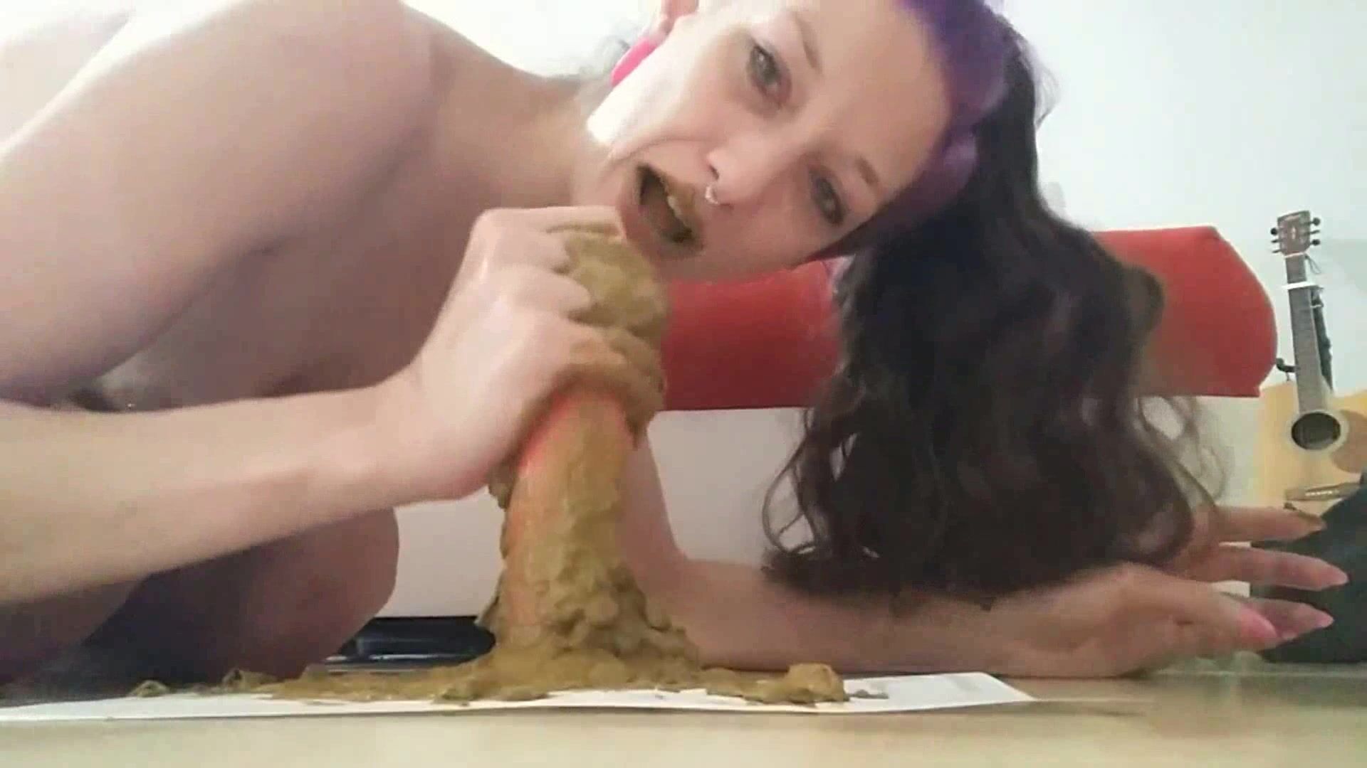 bizarropornos.com - Shit Slut Cumming as She Eats Her Shit