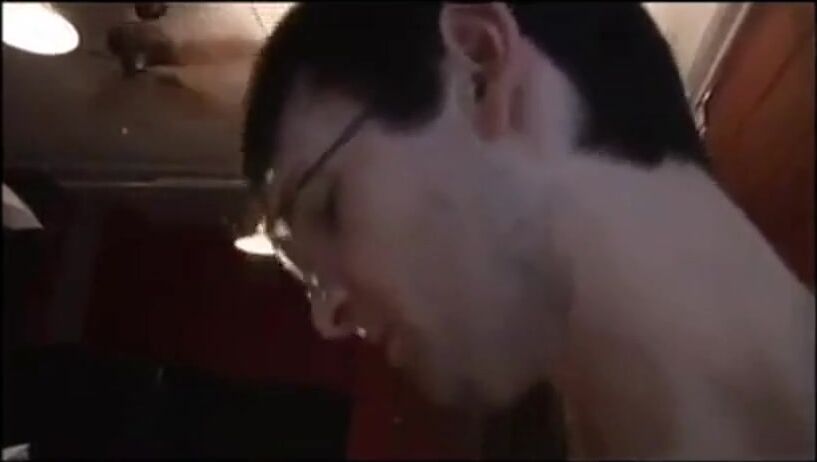 Nerd girl gets choked while fucked rough by a fetishist guy