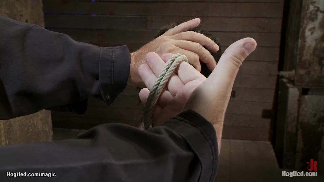 Big tits tight brunette babe Gia DiMarco gets bound in wooden chair then hair bound to backrest and crotch roped and pulled in the air on hogtied