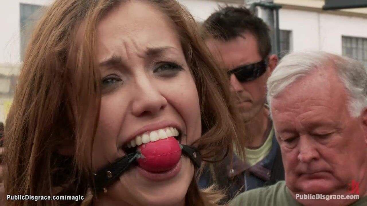 Naked brunette slave Audrey Rose gets gagged and zippered by Princess Donna Dolore at Folsom Street Fair then gang bang fucked in public gallery by bbc Mickey Mod and stranger